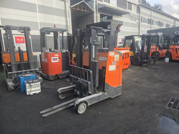 두산 1.5톤 3미터상승 입승식 전동지게차 리치형 저렴하게 팝니다.