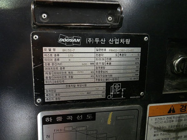 모델: 두산 BR15S-7 (입식 리치 전동지게차)