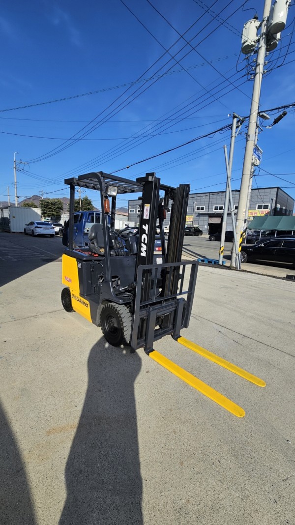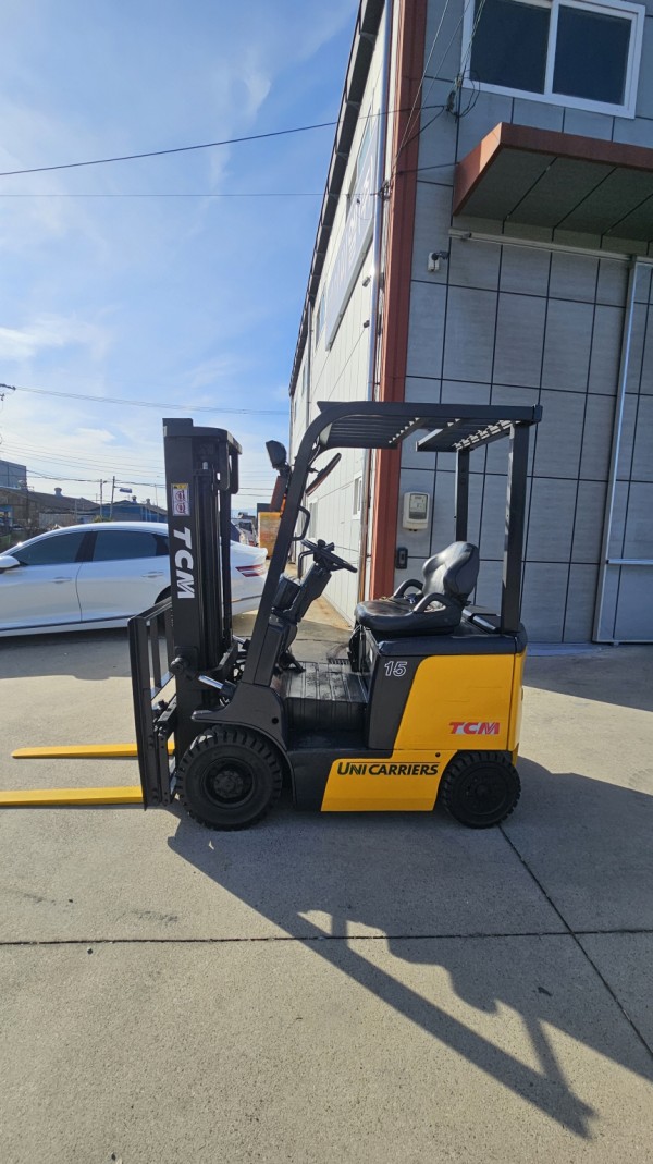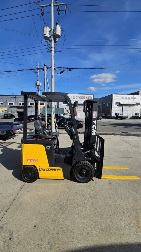 배터리가 2018년식인 티시엠 좌식 1.5톤 전동지게차 사이드시프트 570만