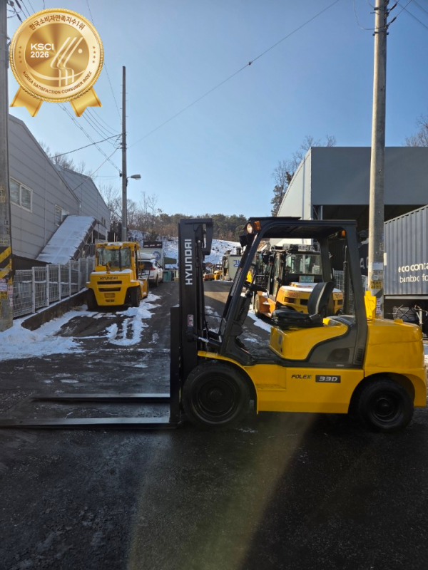 사용시간짧음 구보다엔진 미션힘 좋음 / [현대 33DE] 3.3톤 중고지게차