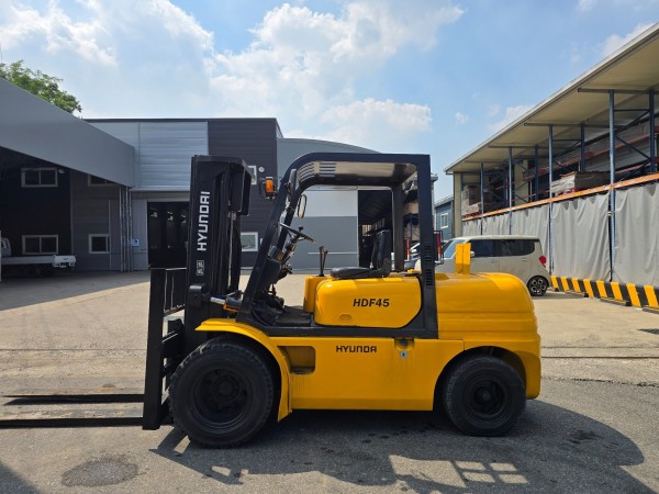 저렴한 중고지게차 현대 4.5톤 더블타이어 자동발 디젤지게차 덧발포함