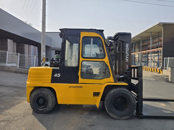 저렴한 중고지게차! 현대 4.5톤 풀캐빈 자동발, 현장 바로 투입 가능