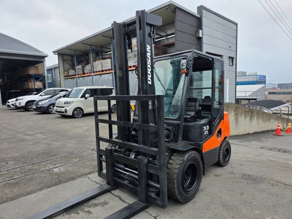 중고지게차 두산 3.3톤 더블타이어 자동발 디젤지게차 1500만원