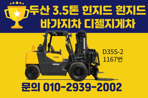 저렴한 중고지게차 두산 3.5톤 힌지드 흰지드 바가지차 디젤지게차 1050만원