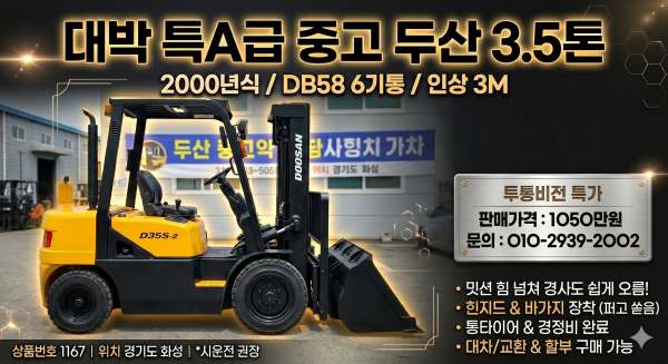 저렴한 중고지게차 두산 3.5톤 힌지드 흰지드 바가지차 디젤지게차 1050만원