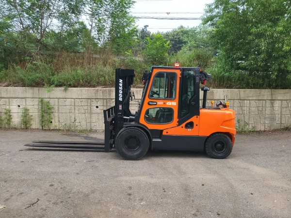 [중고지게차] 두산 D45S-5 4.5톤 3단 디젤지게차(자동발, 더블타이어, 올캐빈, 에어컨, 후방, 안전경보기) 판매 | 한결지게차