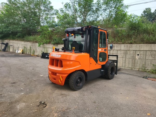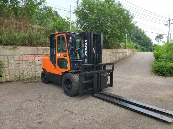 [중고지게차] 두산 D45S-5 4.5톤 3단 디젤지게차(자동발, 더블타이어, 올캐빈, 에어컨, 후방, 안전경보기) 판매 | 한결지게차