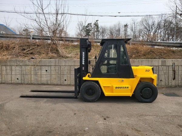 두산중공업 전신인 대우중공업에서 미국 중장비 회사인 캐터필러와 기술제휴로 만들어진 내구성 좋은 5톤 디젤지게차 입니다.