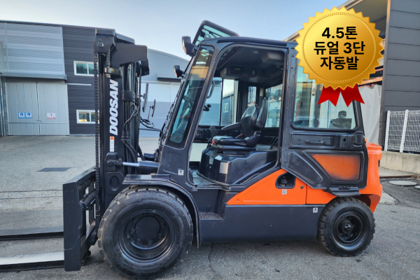 중고지게차 매매 특A급 두산 4.5톤 듀얼 3단 19년식 자동발 에어컨 풀옵션 디젤지게차 3500만원