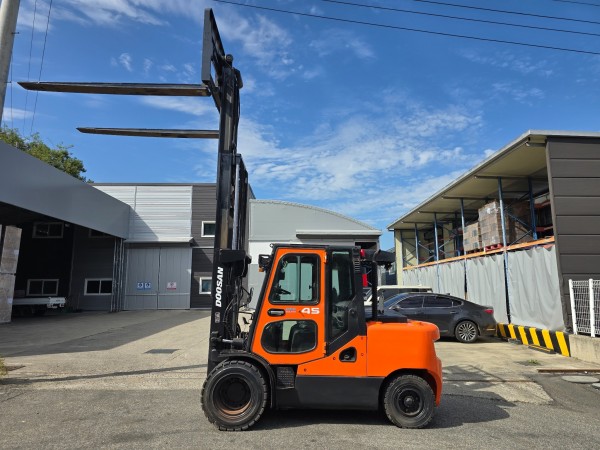 중고지게차 매매 특A급 두산 4.5톤 3단 자동발 에어컨 풀옵션 디젤지게차