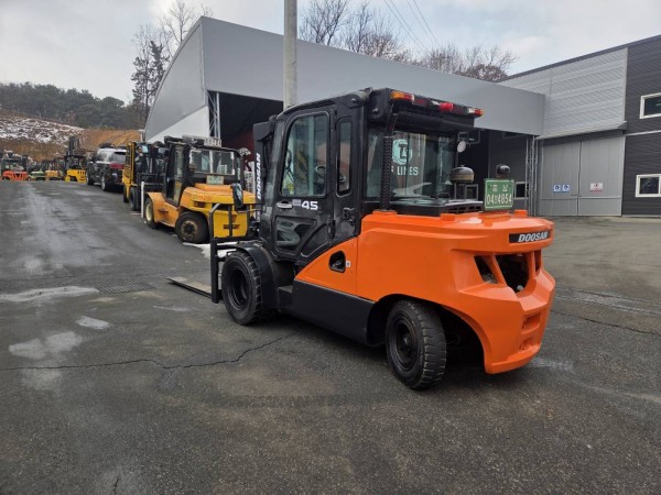 중고지게차 매매 A급 두산 4.5톤 3단 17년식 캐빈 자동발 디젤지게차 3100만원