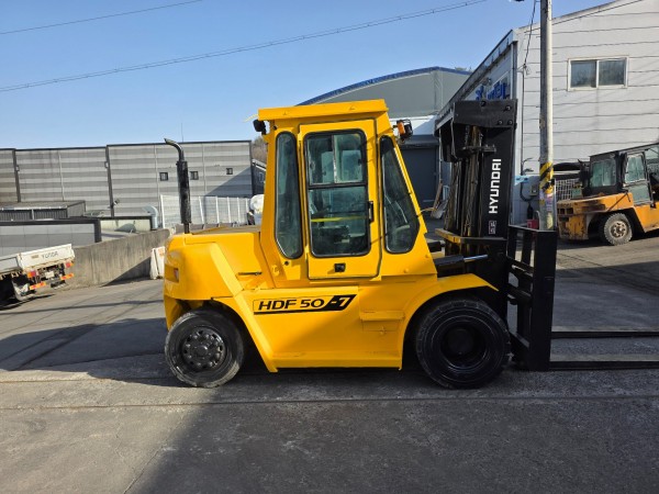 중고지게차 현대 5톤 07년식 자동발 캐빈 디젤지게차 싸게 팝니다.