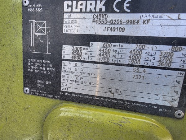 [특가판매] 클라크 4.5톤 듀얼3단 중고지게차