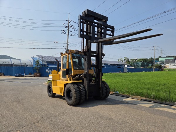 두산 D100 모델. 10톤급 디젤지게차로, 작업 현장에서 바로 투입이 가능한 상태 특A급 장비입니다.