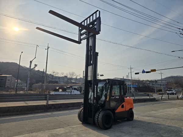 4.5톤 두산 디젤지게차 D45S-7 / 17년식 3단마스트 자동발 상태최상